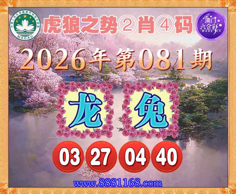 081期:【虎狼之势】 ☝️②肖④码☝️【龙兔】【03.27.04.40】开:虎17